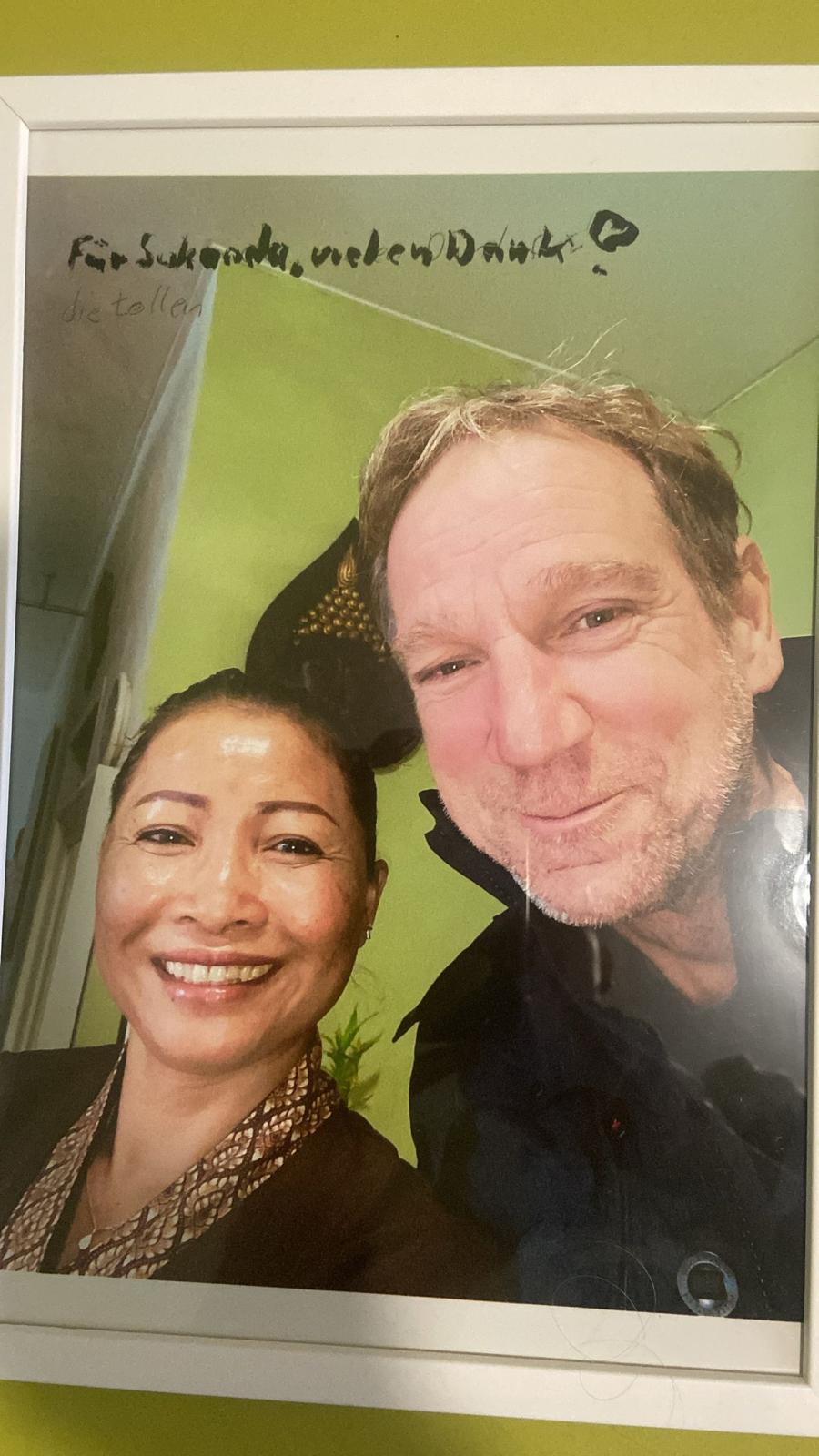 besteht aus passiven Streckpositionen und Dehnbewegungen, Gelenk-mobiiationen und Druckpunktmassage. Zehn ausgewählte Energielinien werden über sanfte Dehnung und mit dem rhytmischen Druck von Hand-ballen, Daumen, Knien, Ellenbogen und Füßen bearbeitet. Die Thai-Massage findet bekleidet statt. Der freie Fluss dieser Energien fördert die Harmonie des Körpers und der Seele. Das Immunsystem wird gestärkt, die Kraft und Elastizität des Körpers spürbar verbessert.